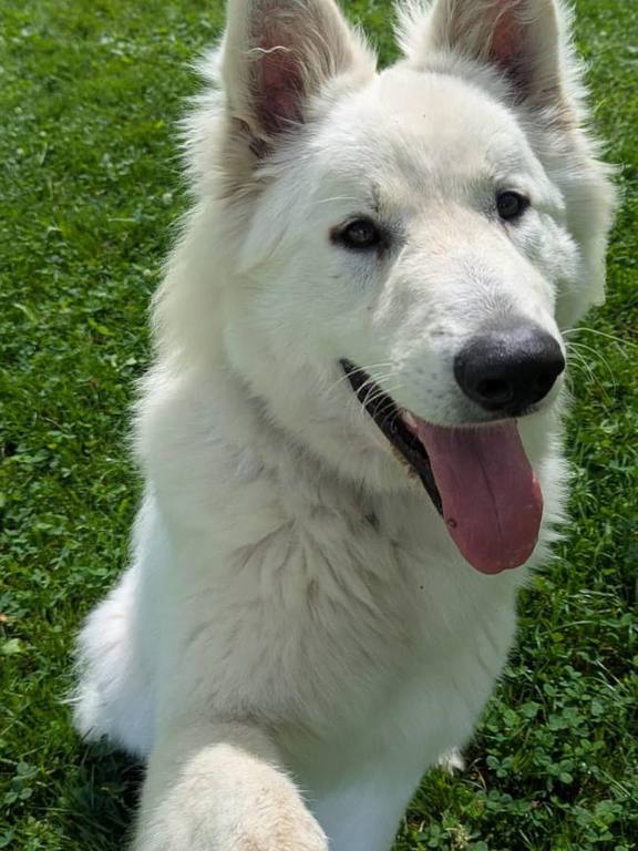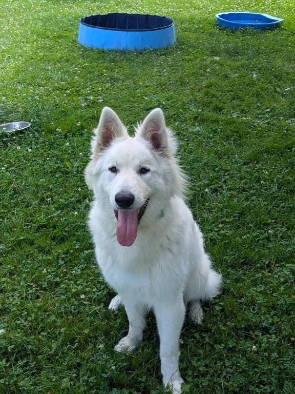 Bei uns zeigt sie sich zu allen Menschen sehr freundlich, freut sich über jeden Besuch in ihrem Freilauf und macht auch schon Übungen bereitwillig mit.