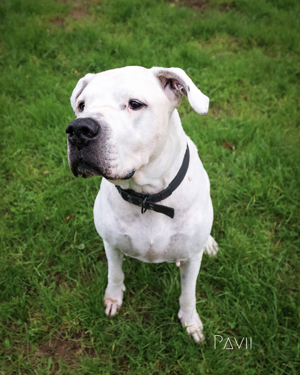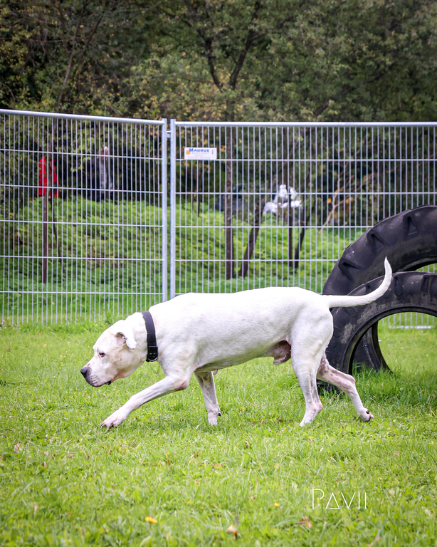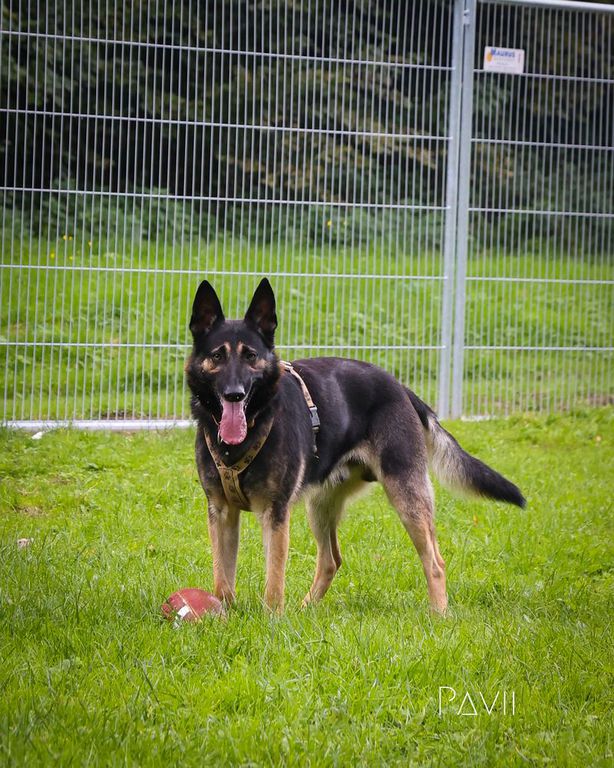 Bei Begegnungen mit anderen Hunden zeigt er sich jedoch sehr herausfordernd. Hier sind Menschen mit Erfahrung gefragt, die ihm mit Ruhe und Klarheit begegnen. Mit seinen 53 kg Körpergewicht braucht