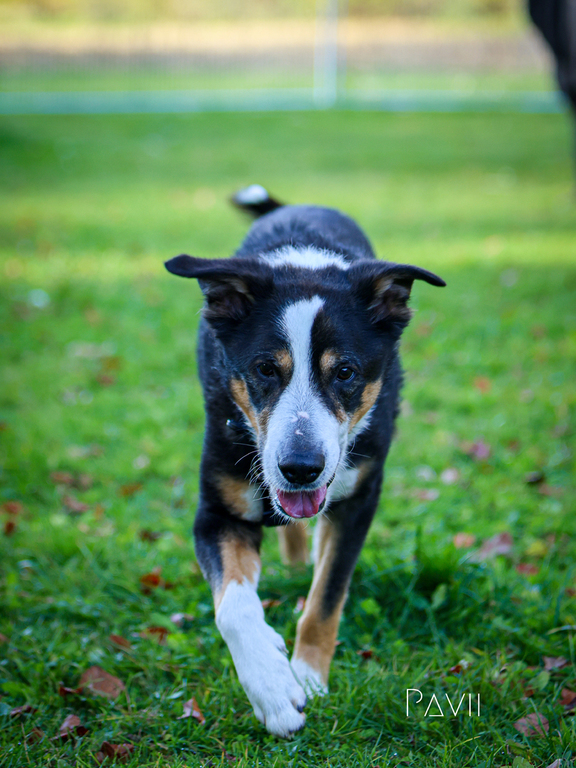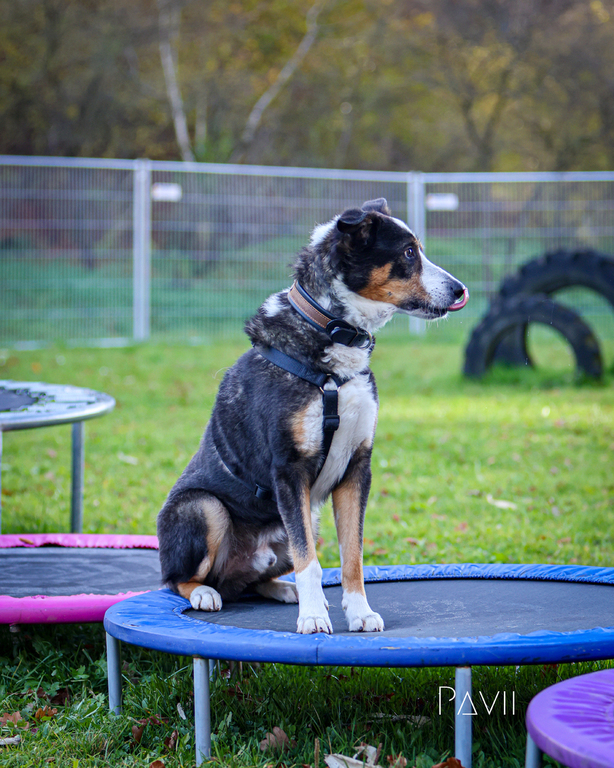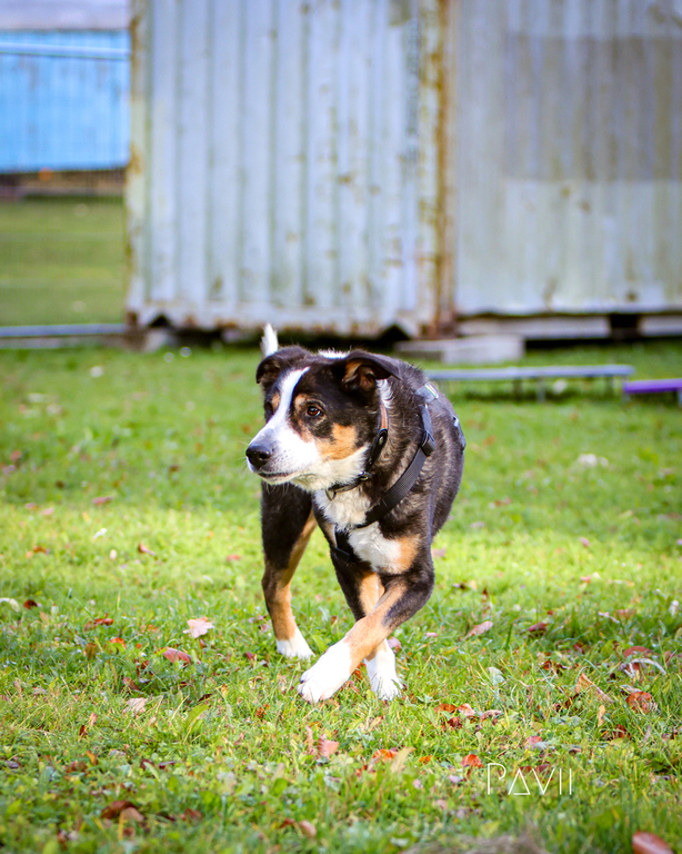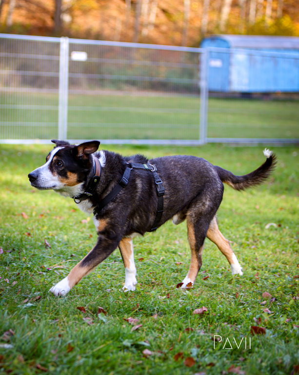 und ist für jegliche Aktivität mit ihrem Menschen offen. Hexe ist sehr vielseitig und freut sich über jede Auslastung. Sie ist in ihren Ausführungen noch sehr hippelig und aufgeregt und spazieren