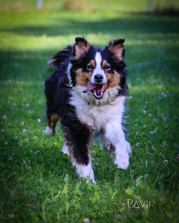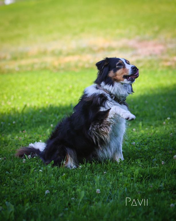 Kima ist eine sehr schlaue Hündin, die schnell lernt und eine Aufgabe benötigt, um ausgelastet zu sein. Rassebedingt nicht untypisch, das wird leider bei Australian Shepherds gerne vergessen, da das