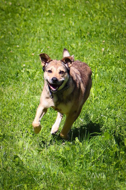 Harry ist ein kleiner aber sehr kraftvoller quirliger Kerl, der, als er zu uns kam, alles verbellte was ihm entgegenkam (Autos, Fahrräder, Fußgänger etc.).