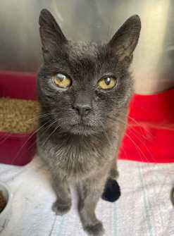 Katzenomi Sushi, 16 Jahre jung, hat vor dem Einzug ins Tierheim mit ihrer Katzengefährtin bei einem älteren Mann